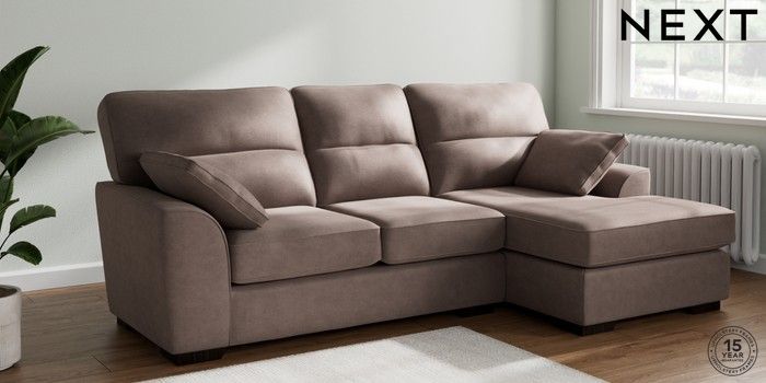 7.2.10 Buy Stamford Highback Medium Sofa Chaise - Right Hand Luxe Chenille Mink Brown Large Square Angle - Dark from the Next UK online shop Click here to use our accessible website