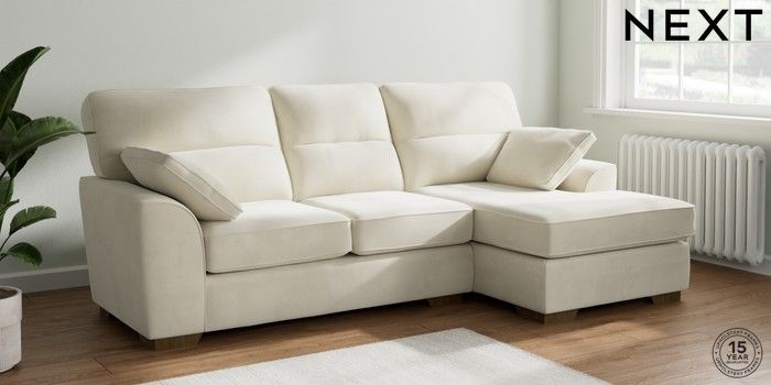 7.0.3 Buy Stamford Highback Medium Sofa Chaise - Right Hand Luxe Chenille Oyster Large Square Angle - Mid from the Next UK online shop Click here to use our accessible website