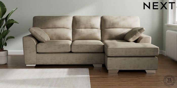 7.3.1 Buy Stamford Highback Medium Sofa Chaise - Right Hand Monza Faux Leather Easy Clean Mink Brown Large Square Angle - Chrome Metal from the Next UK online shop Click here to use our accessible website