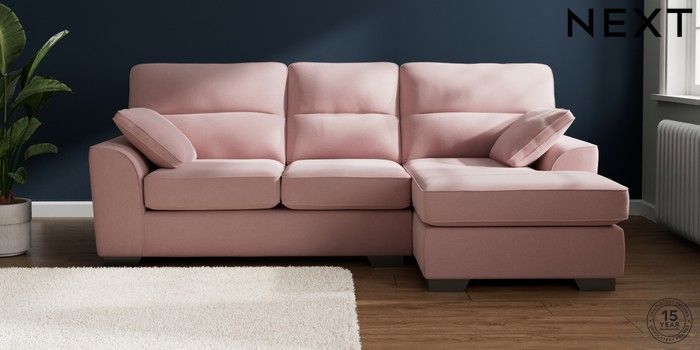 7.3.1 Buy Stamford Highback Medium Sofa Chaise - Right Hand Natural Mix Light Rose Pink Large Square Angle - Gunmetal from the Next UK online shop Click here to use our accessible website