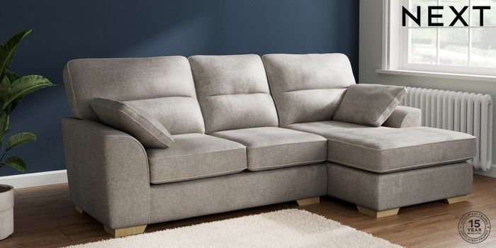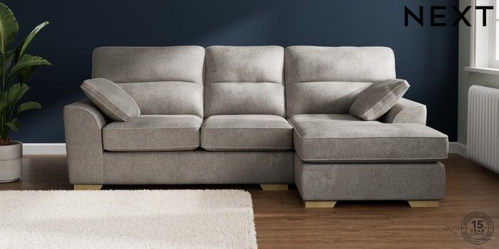 7.2.10 Buy Stamford Highback Medium Sofa Chaise - Right Hand Plush Chenille Light Grey Large Square Angle - Light from the Next UK online shop Click here to use our accessible website