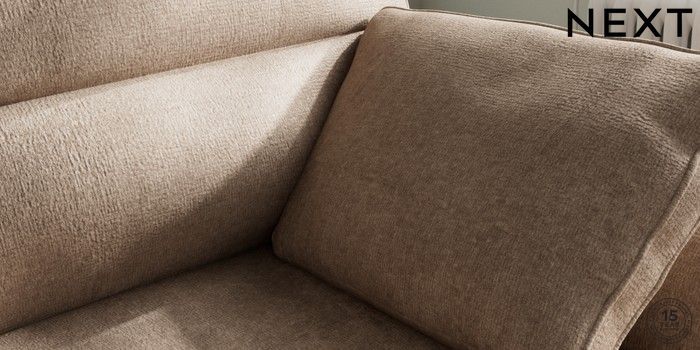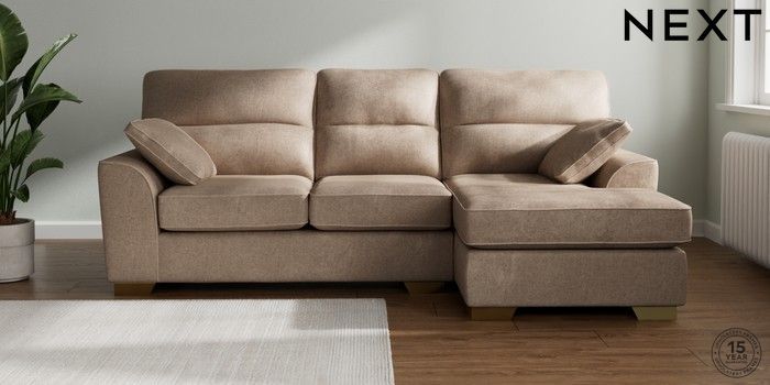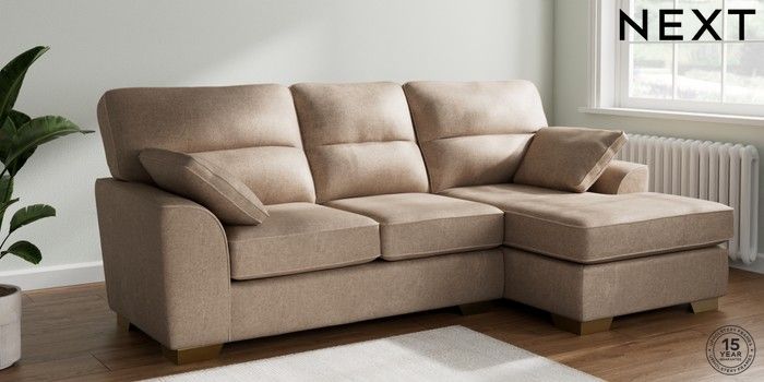 7.2.6 Buy Stamford Highback Medium Sofa Chaise - Right Hand Plush Chenille Mid Natural Large Square Angle - Brushed Brass from the Next UK online shop Click here to use our accessible website