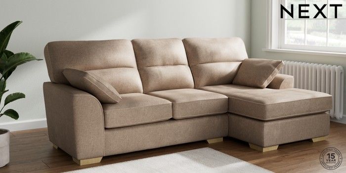 7.2.6 Buy Stamford Highback Medium Sofa Chaise - Right Hand Plush Chenille Mid Natural Large Square Angle - Light from the Next UK online shop Click here to use our accessible website