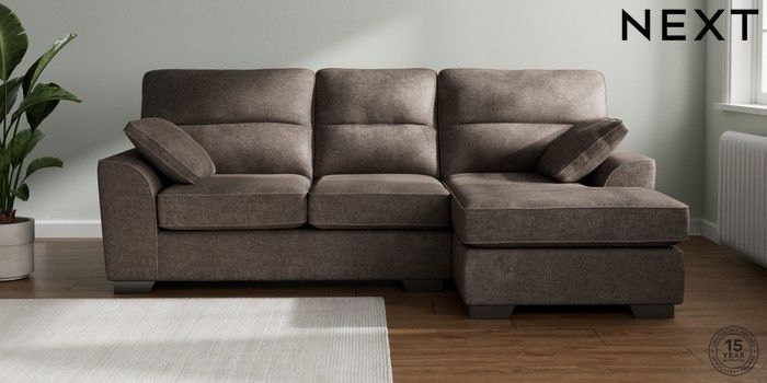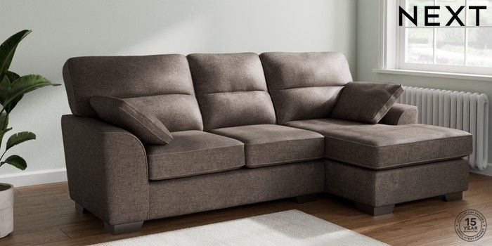 7.2.10 Buy Stamford Highback Medium Sofa Chaise - Right Hand Plush Chenille Mink Brown Large Square Angle - Gunmetal from the Next UK online shop Click here to use our accessible website