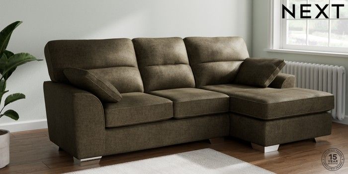 7.2.6 Buy Stamford Highback Medium Sofa Chaise - Right Hand Plush Chenille Moss Green Large Square Angle - Chrome Metal from the Next UK online shop Click here to use our accessible website