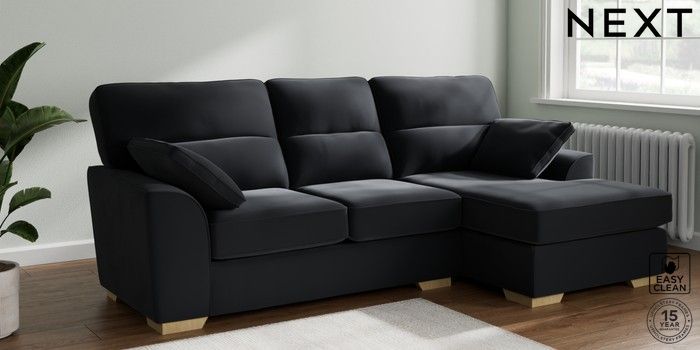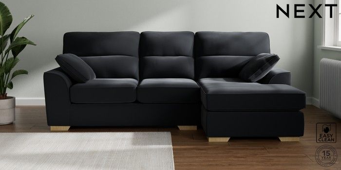 7.2.10 Buy Stamford Highback Medium Sofa Chaise - Right Hand Plush Velvet Easy Clean Charcoal Grey Large Square Angle - Light from the Next UK online shop Click here to use our accessible website