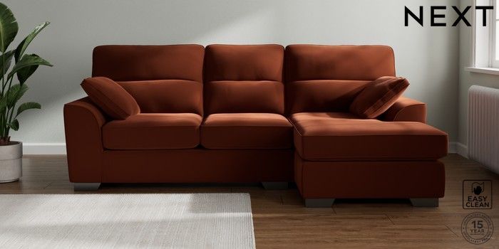 7.3.1 Buy Stamford Highback Medium Sofa Chaise - Right Hand Plush Velvet Easy Clean Ginger Orange Large Square Angle - Gunmetal from the Next UK online shop Click here to use our accessible website