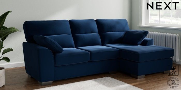 7.3.1 Buy Stamford Highback Medium Sofa Chaise - Right Hand Plush Velvet Easy Clean Navy Blue Large Square Angle - Gunmetal from the Next UK online shop Click here to use our accessible website