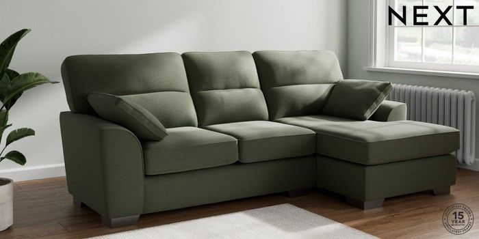 7.3.1 Buy Stamford Highback Medium Sofa Chaise - Right Hand Relaxed Linen Look Dark Green Large Square Angle - Gunmetal from the Next UK online shop Click here to use our accessible website