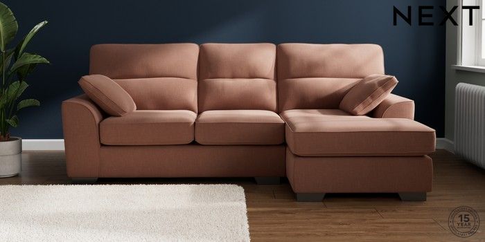 7.2.10 Buy Stamford Highback Medium Sofa Chaise - Right Hand Relaxed Linen Look Light Rust Brown Large Square Angle - Gunmetal from the Next UK online shop Click here to use our accessible website