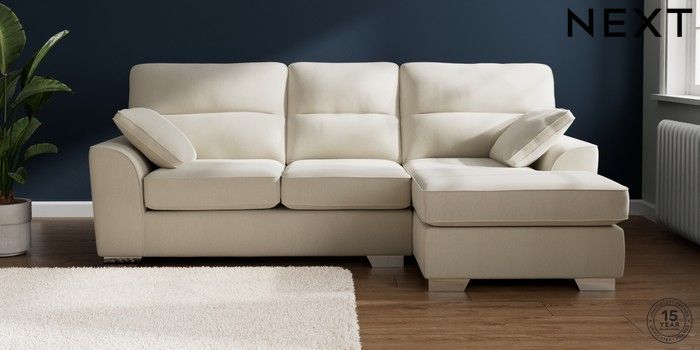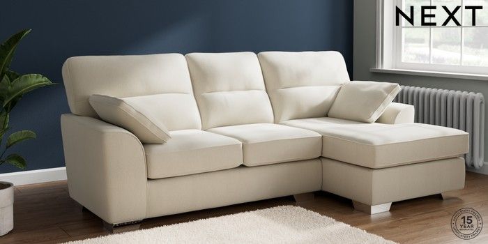7.3.1 Buy Stamford Highback Medium Sofa Chaise - Right Hand Relaxed Linen Look Oyster Large Square Angle - Chrome Metal from the Next UK online shop Click here to use our accessible website