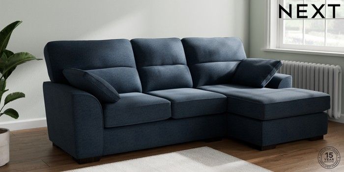 6.12.1 Buy Stamford Highback Medium Sofa Chaise - Right Hand Ripple Chenille Dark Blue Large Square Angle - Dark from the Next UK online shop Click here to use our accessible website