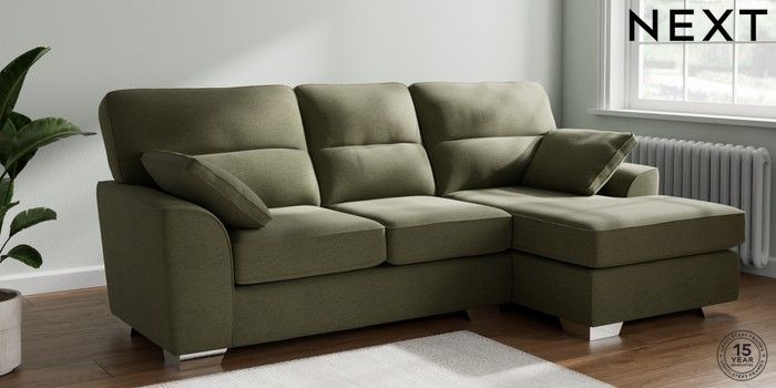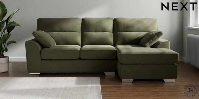 7.2.10 Buy Stamford Highback Medium Sofa Chaise - Right Hand Ripple Chenille Mid Moss Green Large Square Angle - Chrome Metal from the Next UK online shop Click here to use our accessible website