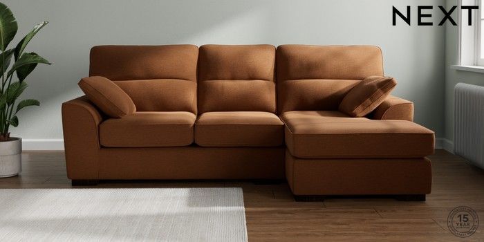 7.2.10 Buy Stamford Highback Medium Sofa Chaise - Right Hand Ripple Chenille Mid Rust Brown Large Square Angle - Dark from the Next UK online shop Click here to use our accessible website