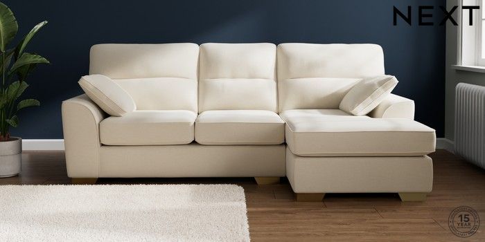 7.2.10 Buy Stamford Highback Medium Sofa Chaise - Right Hand Ripple Chenille Oyster Large Square Angle - Brushed Brass from the Next UK online shop Click here to use our accessible website