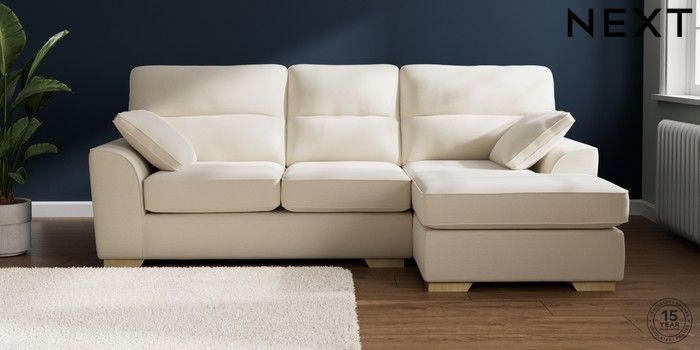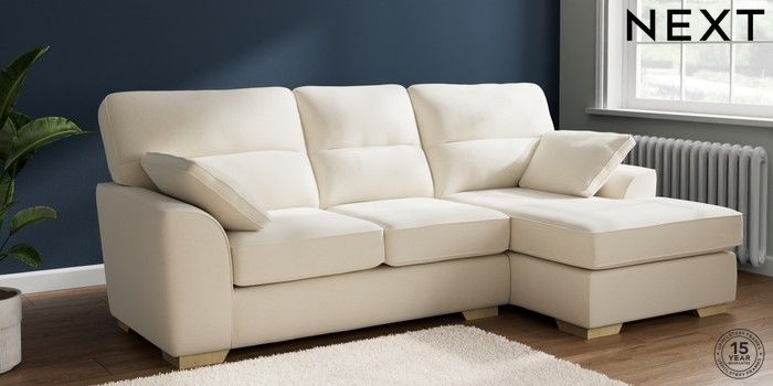 7.2.10 Buy Stamford Highback Medium Sofa Chaise - Right Hand Ripple Chenille Oyster Large Square Angle - Light from the Next UK online shop Click here to use our accessible website