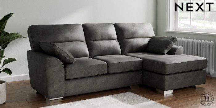 7.2.6 Buy Stamford Highback Medium Sofa Chaise - Right Hand Monza Faux Leather Easy Clean Dark Grey Large Square Angle - Chrome Metal from the Next UK online shop Click here to use our accessible website