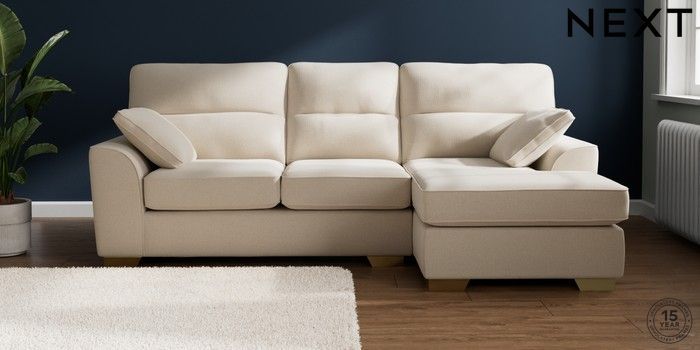 7.2.10 Buy Stamford Highback Medium Sofa Chaise - Right Hand Studio Chenille Oyster Large Square Angle - Brushed Brass from the Next UK online shop Click here to use our accessible website