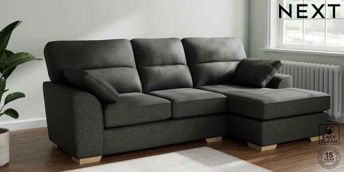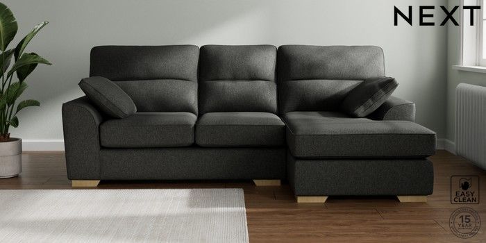 7.2.10 Buy Stamford Highback Medium Sofa Chaise - Right Hand Tweedy Blend Easy Clean Charcoal Grey Large Square Angle - Light from the Next UK online shop Click here to use our accessible website