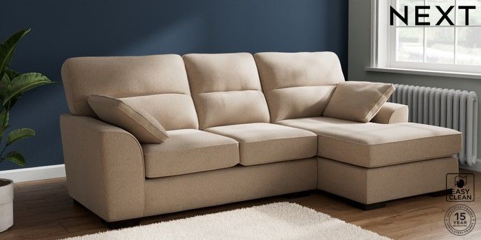 7.2.10 Buy Stamford Highback Medium Sofa Chaise - Right Hand Tweedy Blend Easy Clean Light Dove Natural Large Square Angle - Dark from the Next UK online shop Click here to use our accessible website