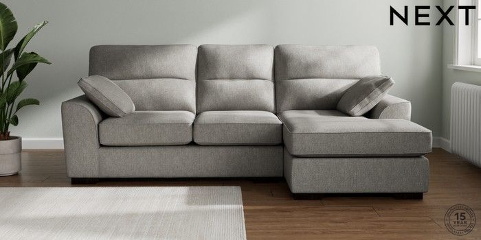 7.2.10 Buy Stamford Highback Medium Sofa Chaise - Right Hand Tweedy Chenille Mid Grey Large Square Angle - Dark from the Next UK online shop Click here to use our accessible website