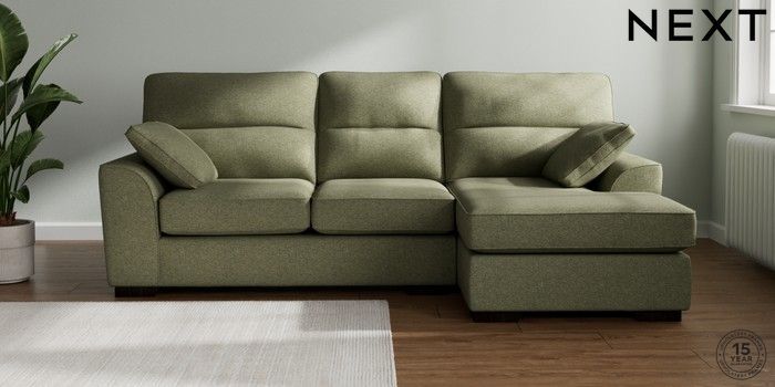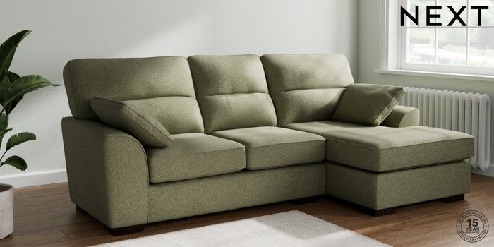 7.2.10 Buy Stamford Highback Medium Sofa Chaise - Right Hand Tweedy Chenille Mid Moss Green Large Square Angle - Dark from the Next UK online shop Click here to use our accessible website