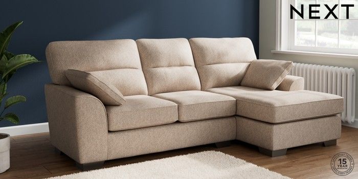 7.3.1 Buy Stamford Highback Medium Sofa Chaise - Right Hand Tweedy Chenille Mid Natural Large Square Angle - Gunmetal from the Next UK online shop Click here to use our accessible website