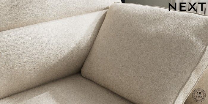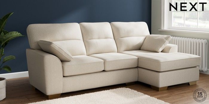7.2.10 Buy Stamford Highback Medium Sofa Chaise - Right Hand Tweedy Chenille Oyster Large Square Angle - Brushed Brass from the Next UK online shop Click here to use our accessible website
