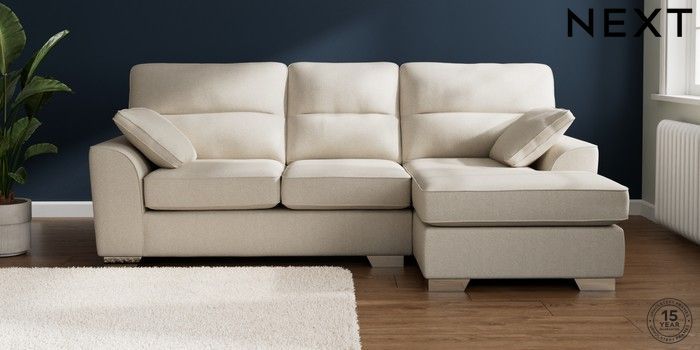 7.2.10 Buy Stamford Highback Medium Sofa Chaise - Right Hand Tweedy Chenille Oyster Large Square Angle - Chrome Metal from the Next UK online shop Click here to use our accessible website