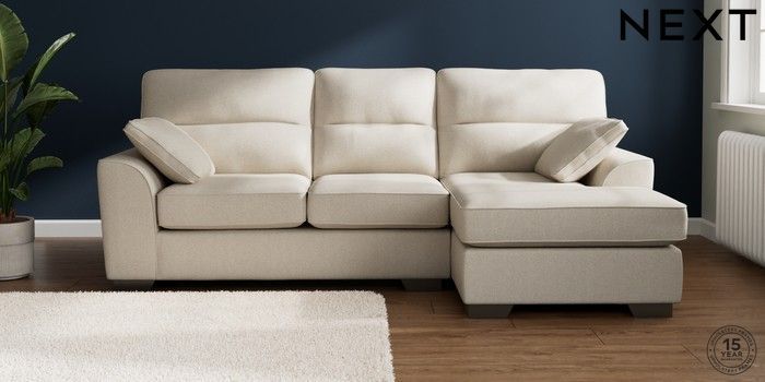 7.3.1 Buy Stamford Highback Medium Sofa Chaise - Right Hand Tweedy Chenille Oyster Large Square Angle - Gunmetal from the Next UK online shop Click here to use our accessible website