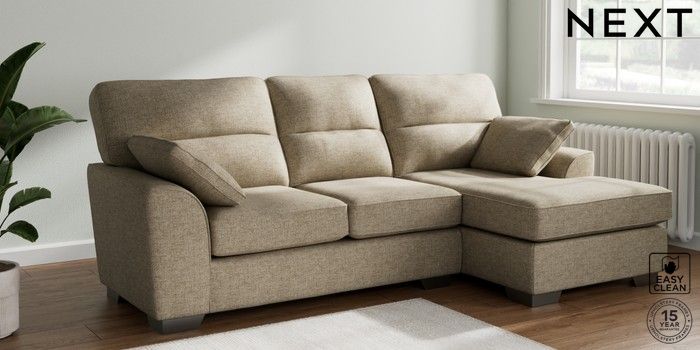 7.3.1 Buy Stamford Highback Medium Sofa Chaise - Right Hand Woven Chenille Easy Clean Mid Natural Large Square Angle - Gunmetal from the Next UK online shop Click here to use our accessible website