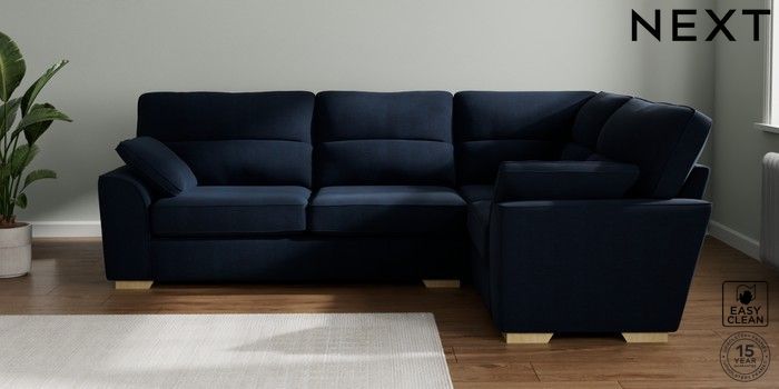 7.2.10 Buy Stamford Highback Large Corner Sofa - Right Hand Fine Chenille Easy Clean Dark Navy Blue Large Square Angle - Light from the Next UK online shop Click here to use our accessible website