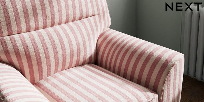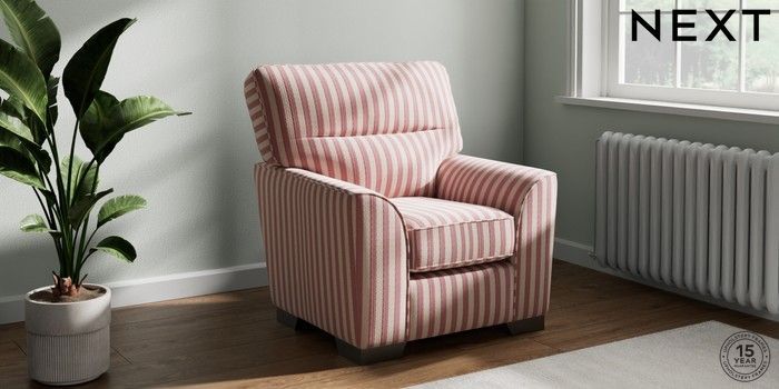 7.3.1 Buy Stamford Highback Small Armchair Bold Chenille Stripe Dark Pink Square Angle - Gunmetal from the Next UK online shop Click here to use our accessible website