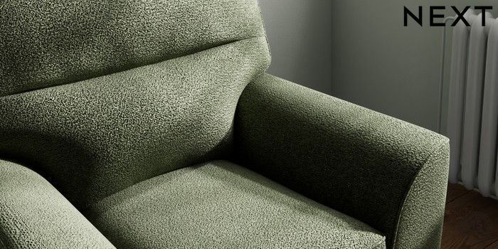 6.12.1 Buy Stamford Highback Small Armchair Boucle Chenille Dark Moss Green Square Angle - Light from the Next UK online shop Click here to use our accessible website