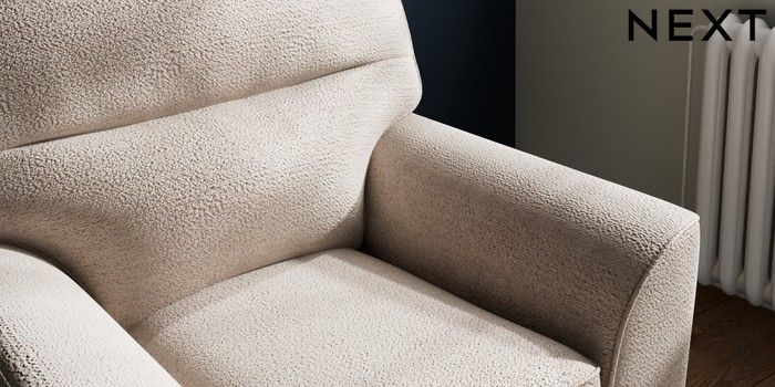 6.12.1 Buy Stamford Highback Small Armchair Boucle Chenille Light Natural Square Angle - Dark from the Next UK online shop Click here to use our accessible website