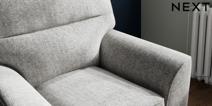 6.12.1 Buy Stamford Highback Small Armchair Chunky Boucle Easy Clean Light Grey Square Angle - Gunmetal from the Next UK online shop Click here to use our accessible website