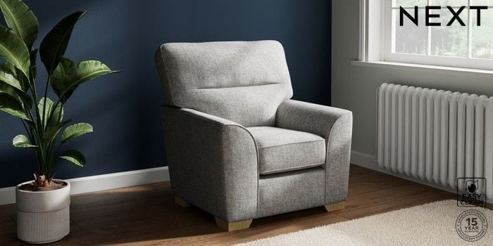 6.12.1 Buy Stamford Highback Small Armchair Chunky Boucle Easy Clean Light Grey Square Angle - Light from the Next UK online shop Click here to use our accessible website