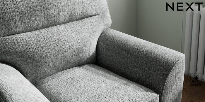 6.12.1 Buy Stamford Highback Small Armchair Chunky Boucle Easy Clean Mid Grey Square Angle - Brushed Brass from the Next UK online shop Click here to use our accessible website