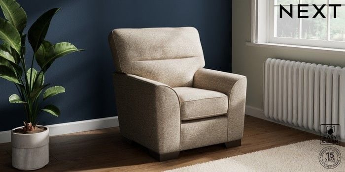 6.12.1 Buy Stamford Highback Small Armchair Chunky Boucle Easy Clean Mid Natural Square Angle - Gunmetal from the Next UK online shop Click here to use our accessible website