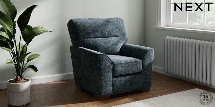 6.12.1 Buy Stamford Highback Small Armchair Chunky Chenille Dark Navy Blue Square Angle - Mid from the Next UK online shop Click here to use our accessible website