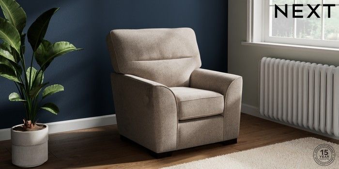 6.12.1 Buy Stamford Highback Small Armchair Chunky Chenille Light Dove Square Angle - Dark from the Next UK online shop Click here to use our accessible website