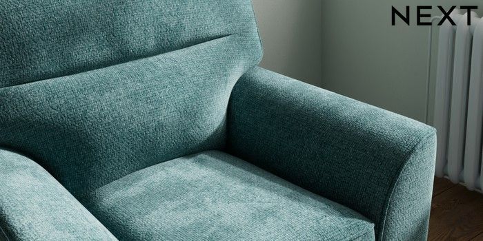 6.12.1 Buy Stamford Highback Small Armchair Chunky Chenille Mid Teal Green Square Angle - Brushed Brass from the Next UK online shop Click here to use our accessible website