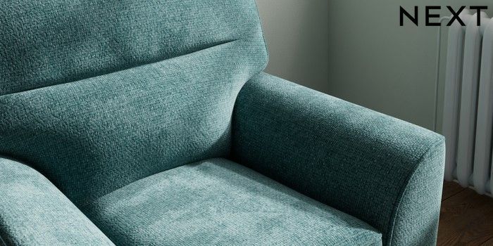 6.12.1 Buy Stamford Highback Small Armchair Chunky Chenille Mid Teal Green Square Angle - Mid from the Next UK online shop Click here to use our accessible website
