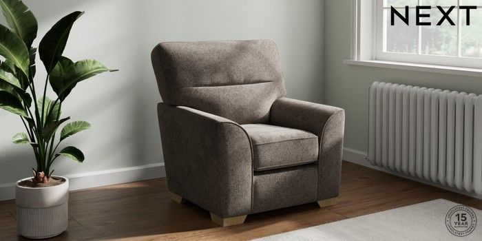 6.12.1 Buy Stamford Highback Small Armchair Chunky Chenille Mink Brown Square Angle - Light from the Next UK online shop Click here to use our accessible website