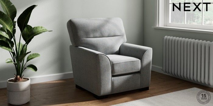 6.12.1 Buy Stamford Highback Small Armchair Chunky Marl Mid Grey Square Angle - Dark from the Next UK online shop Click here to use our accessible website