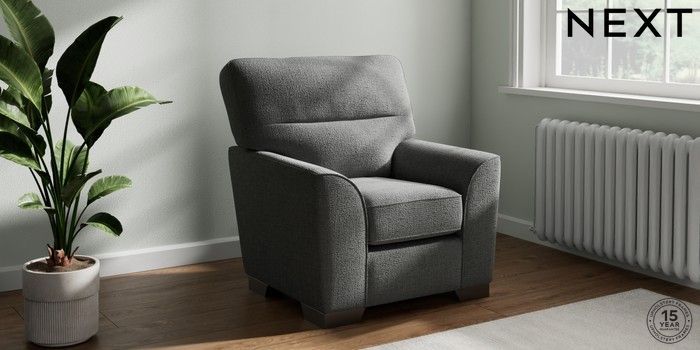 6.12.1 Buy Stamford Highback Small Armchair Chunky Texture Dark Grey Square Angle - Gunmetal from the Next UK online shop Click here to use our accessible website