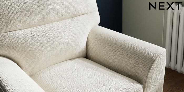 6.12.1 Buy Stamford Highback Small Armchair Chunky Texture Oyster Square Angle - Brushed Brass from the Next UK online shop Click here to use our accessible website