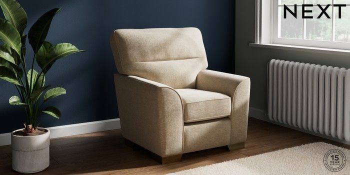 6.12.1 Buy Stamford Highback Small Armchair Chunky Weave Cream Square Angle - Brushed Brass from the Next UK online shop Click here to use our accessible website