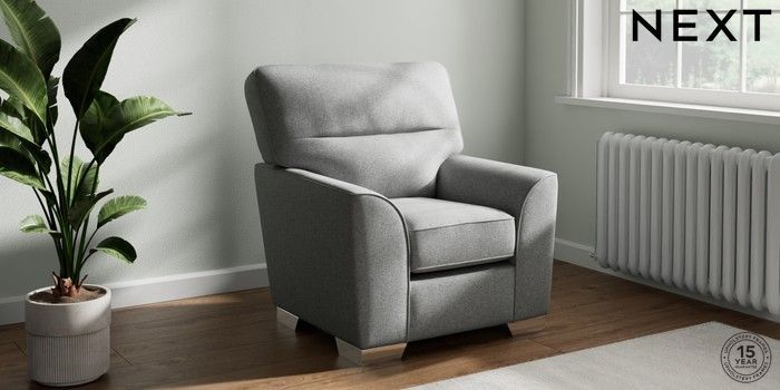 6.12.1 Buy Stamford Highback Small Armchair Chunky Weave Mid Grey Square Angle - Chrome Metal from the Next UK online shop Click here to use our accessible website