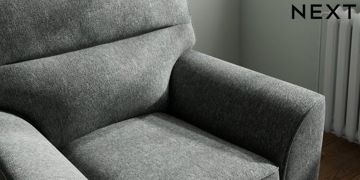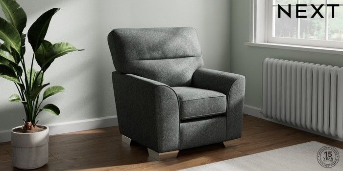 6.12.1 Buy Stamford Highback Small Armchair Cotswold Chenille Dark Grey Square Angle - Chrome Metal from the Next UK online shop Click here to use our accessible website